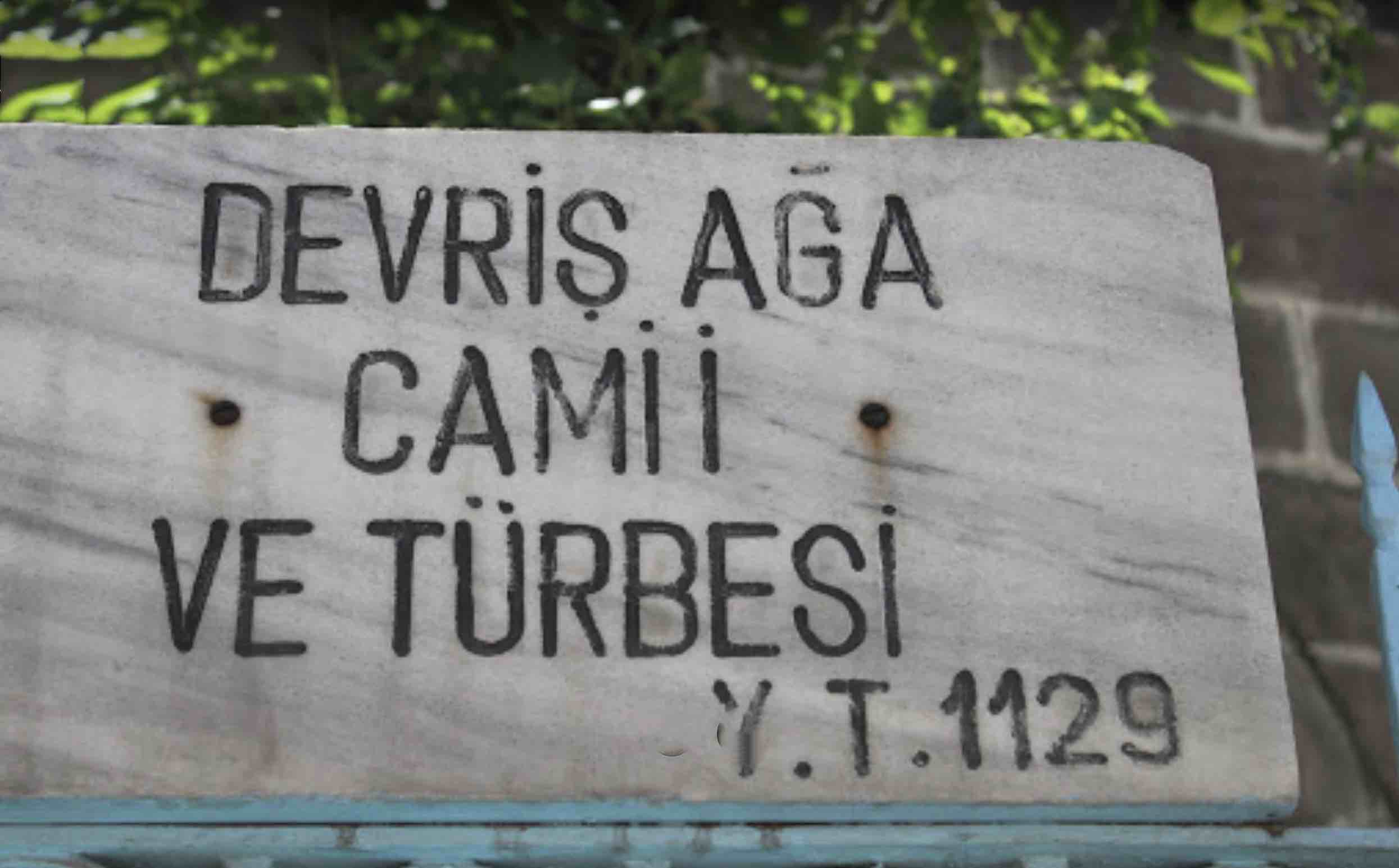 Hacı Bektaş oğlu Derviş Hacı İbrahim Ağa 17. yüzyıl sonu 18.yüzyıl başlarında hayat sürmüş, Erzurum’un yetiştirdiği, sanatkar ve kundura işleriyle uğraşan bir sofidir. Derviş Ağanın mezarı Gülahmet caddesinde, 1717 yılında yaptırdığı, kendi adını taşıyan Derviş Ağa Camiinin haremine girişte sol taraftaki küçük hazirededir. Mevlevi tarikatına mensup kimselerin başlarına giydikleri özel bir başlık olan Mevlevi sikkesi Derviş Ağa Haziresinde bulunan Said Efendi ve Hacı Mehmed Efendi’nin mezarlarına ait baş şahidelerin üst bölümlerinde karşımıza çıkar. 35-40 kadar kabrin yer aldığı bu hazirenin ortasında bulunan İbrahim Ağa’nın mezarı baldaken tarzı bir türbe ile çevrilmiştir. Türbeyi dört sütun üstünde yükselen bir kubbe örtmektedir. Kitabesi şöyledir.