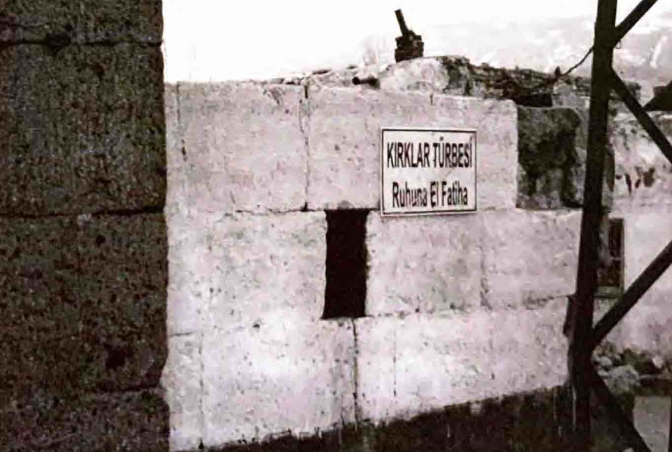 Bir başka rivayete göre ise, Erzurum’un fethi için yapılan muharebede, Kalenin fethi zorlaşır. İstişare sonucu kırk eren görev alır. Bunlara esir süsü verilerek, esir alınmışlar gibi kaleye yaklaşıp, kale kapılarını açtırmak ve bunların öncülüğünde kuvvetlerin kaleye girişini sağlamaktır. Kırklar kale kapısına yaklaşınca, durum düşman tarafından sezilir. İşte bu çarpışmalarda şehit olan kırklar burada yatmaktadır.